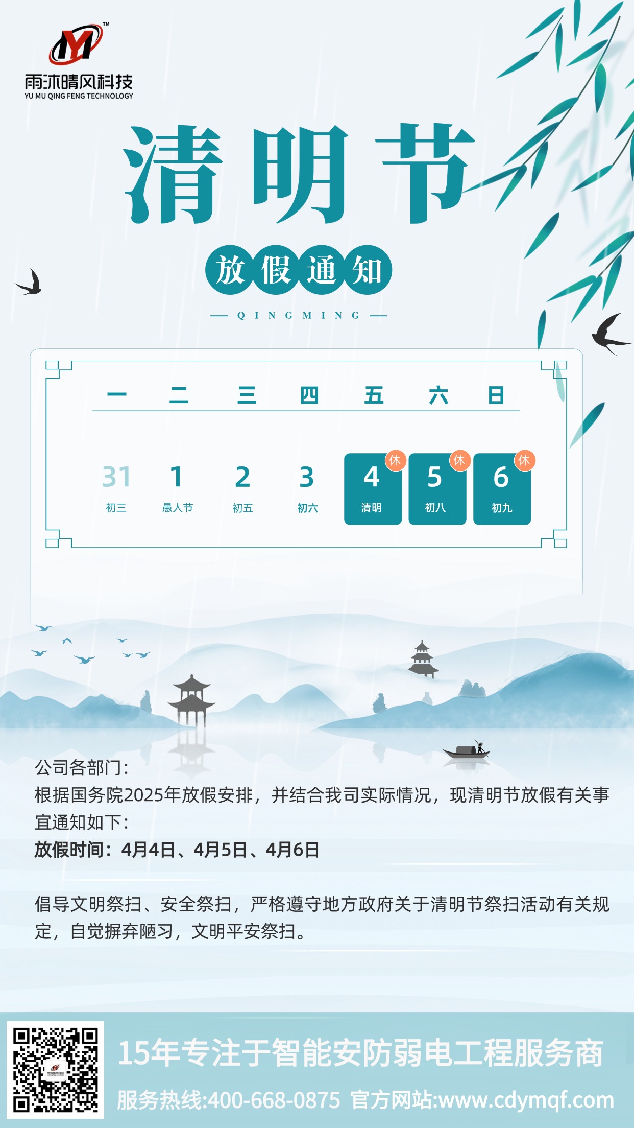 雨沐晴風科技.2025年清明節(jié)放假通知